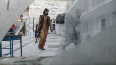 Taliban fighters are pictured inside a Sikh temple following an attack by gunmen in Kabul. (Photo by Ahmad SAHEL ARMAN / AFP)
