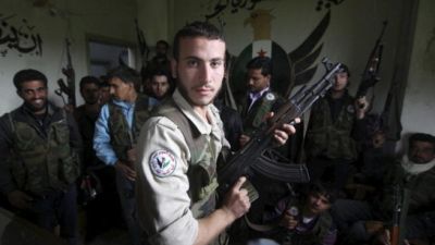 Free Syrian Army members at their base on April 21, 2013, in Darkoush, Syria. [Getty Images]