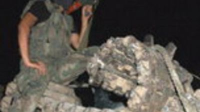 An air strike killed one Palestinian fighter and seriously wounded two others as they confronted more than 50 Israeli tanks and armored personnel carriers advancing near Rafah airport.