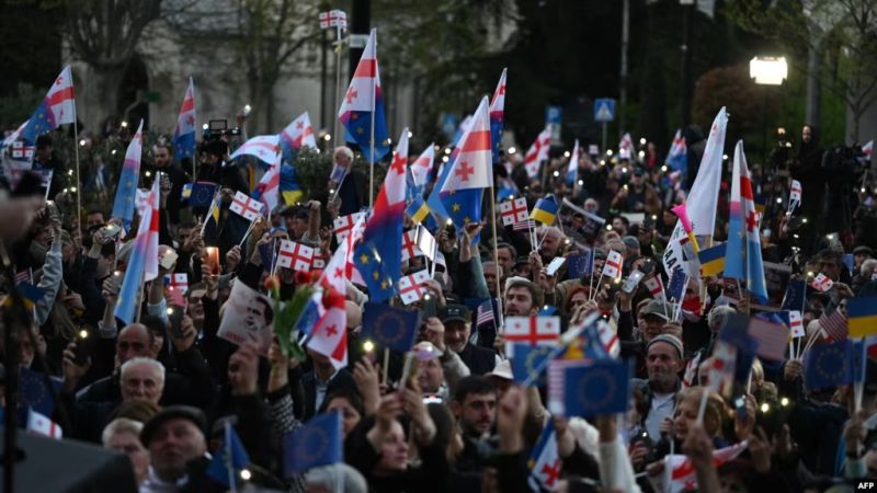 Several thousand Georgians took to the streets on Wednesday to demonstrate their strong support for their country's pursuit of EU membership, following Brussels' recommendation to grant Georgia candidate status.