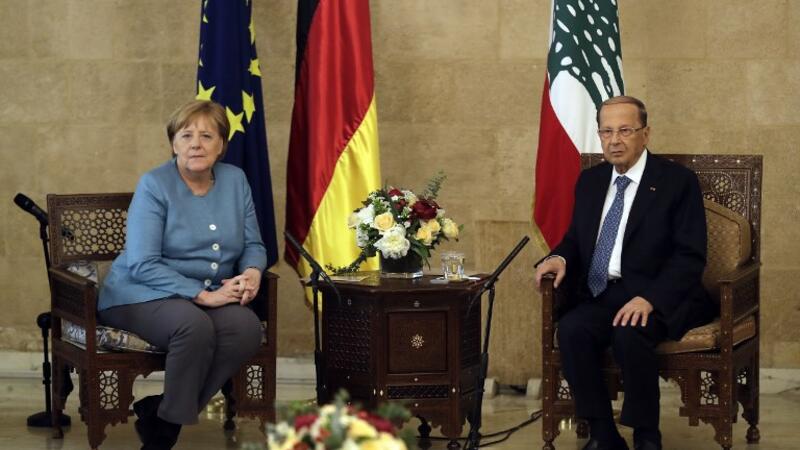 He made the appeal during a Friday meeting with Merkel at the presidential palace in Beirut.
