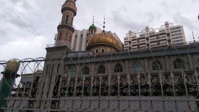 In Urumqi, the capital and rapidly developing economic hub of the Xinjiang province, its historic mosques are empty. Smith Finley walked by the Yan’anlu Mosque in the city, and noticed that it was closed off with high fences adorned with razor wire. She took a photo of its empty courtyard from the street.