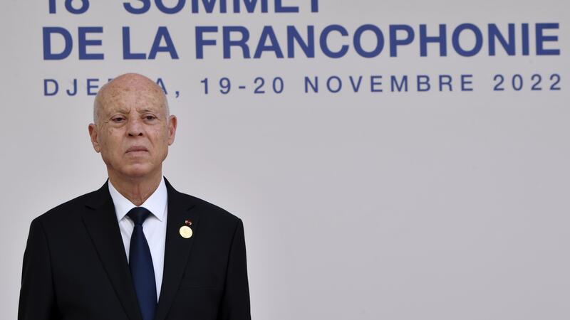 Tunisia's President Kais Saied is pictured during the 18th Francophone countries Summit in the island resort of Djerba, Tunisia on November 19, 2022. (Photo by FETHI BELAID / AFP)