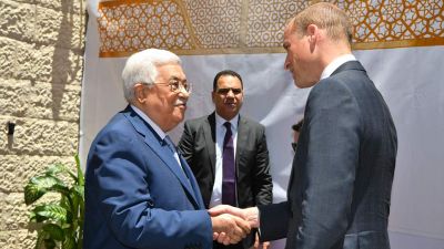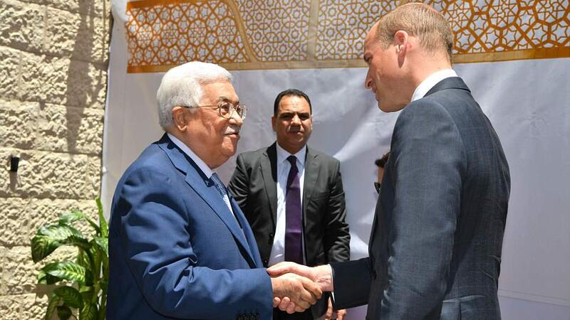 William has sat down for talks with Mr Abbas in Ramallah after their historic handshake, becoming the first member of the royal family to visit the Palestinian Occupied Territories at the request of the Government.