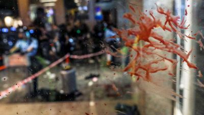 Meanwhile, a man with a knife attacked several people and bit off part of a politician’s ear. The knife-wielder was wounded as he was beaten by the protesters.