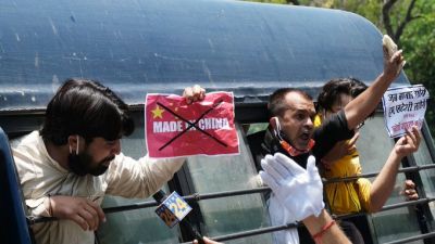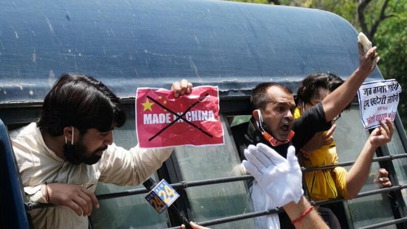 On Thursday, he organized a protest in Greater Noida, a suburb of New Delhi, where the group called for boycotts of Chinese mobiles and urged traders not to sell Chinese goods.