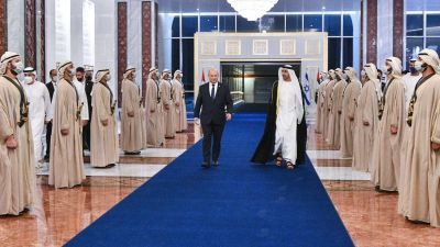 Sheikh Abdullah bin Zayed Al Nahyan, Minister of Foreign Affairs and International Cooperation, welcomed Naftali Bennett upon his arrival at the Presidential Terminal at Abu Dhabi International Airport.