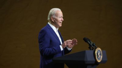 Biden was delivering a speech in Menlo, Iowa, on his administration’s efforts to lower gas prices which have been increasing due to the war and address rising inflation.