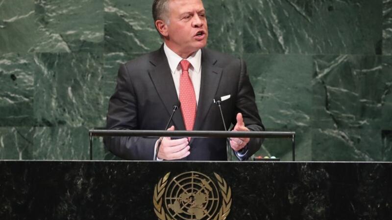 King of Jordan Abdullah II ibn Al Hussein addresses the United Nations General Assembly on September 25, 2018 in New York City. (JOHN MOORE / GETTY IMAGES NORTH AMERICA / AFP)