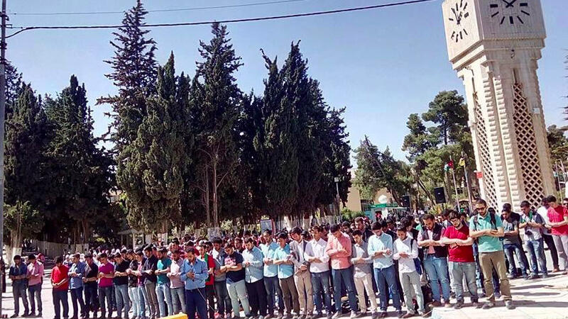 Students performed “prayers for the absent” during the rally, communal funeral prayers performed by Muslims for those who die in foreign lands and do not receive a proper burial.