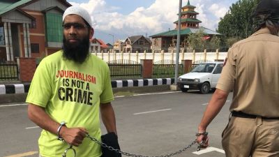 On September 8, when Aasif was brought before a local court in Srinagar, his hands were chained. He was wearing a t-shirt saying: "Journalism is not a crime."