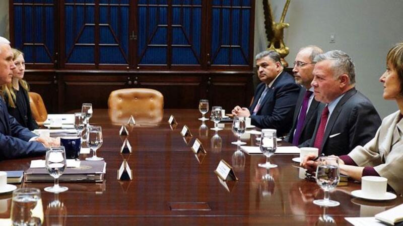 King Abdullah on Monday met with US Vice President Mike Pence in Washington and discussed opportunities to bolster Jordan’s strategic partnership with the US, as well as the latest regional developments.