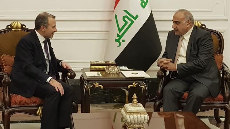 Caretaker Foreign Minister Gebran Bassil and Iraqi Prime Minister Adel Abdel-Mahdi discussed a series of measures that would boost ties between Lebanon and Iraq, a statement from Bassil’s office reported Tuesday.