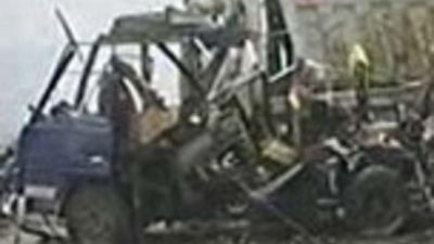 The first bomb exploded in the first bus, causing damage and casualties, and as people rushed to the scene, a second blast ripped through a second bus that drove up behind it, a security official was quoted as saying by the AP. The 9:15 a.m. blasts occurred south of the town of Bikfaya, the ancestral home of the Gemayel family, a prominent political Christian family in Lebanon. Pierre Gemayel, a cabinet member, was assassinated last November.