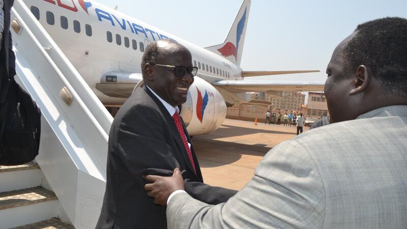 A long-time critic of South Sudan President Salva Kiir returned to Juba on Thursday to help speed up implementation of a peace deal that is running several months behind schedule.