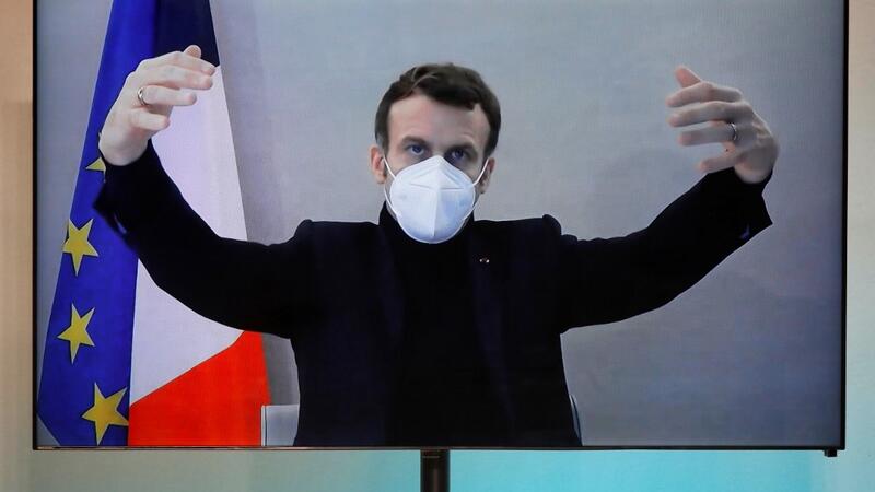 Video excerpts released by the EU showed the leaders spread out in a circle in a huge meeting room — Macron, and most of the other leaders, were not masked.