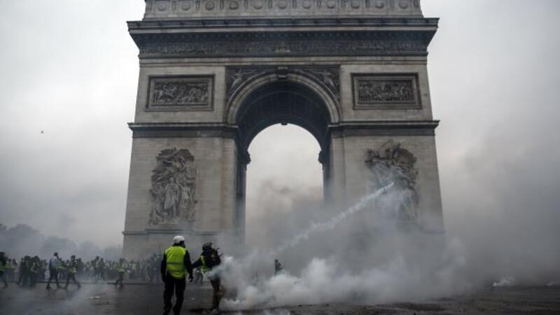 But the demonstrations became increasingly violent. People torched cars, vandalized and looted stores, and damaged the Arc de Triomphe war memorial in the capital, Paris.