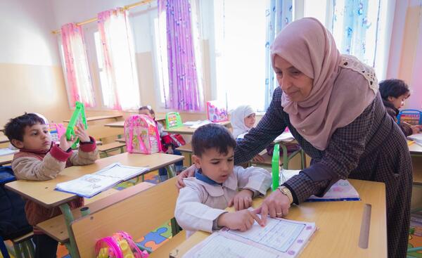 November 2018, Kikla (Libya). Fatma Ali Mohammed is teaching reading at Al Maaifa school in Kikla. The facility was renovated and equipped by the Stabilization Facility for Libya. Photo: ©UNDP Libya /Malek Almaghrebi