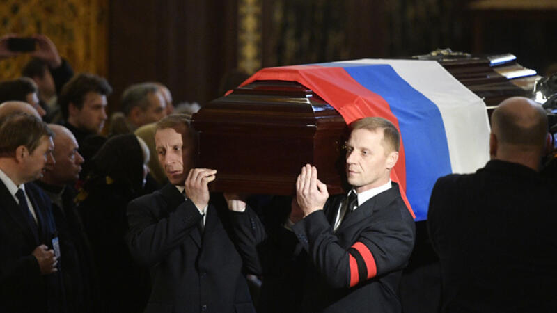 A funeral service was then held at Moscow's prestigious Cathedral of Christ the Saviour, presided over by the Russian Orthodox Church's highest-ranking clergyman, Patriarch Kirill.