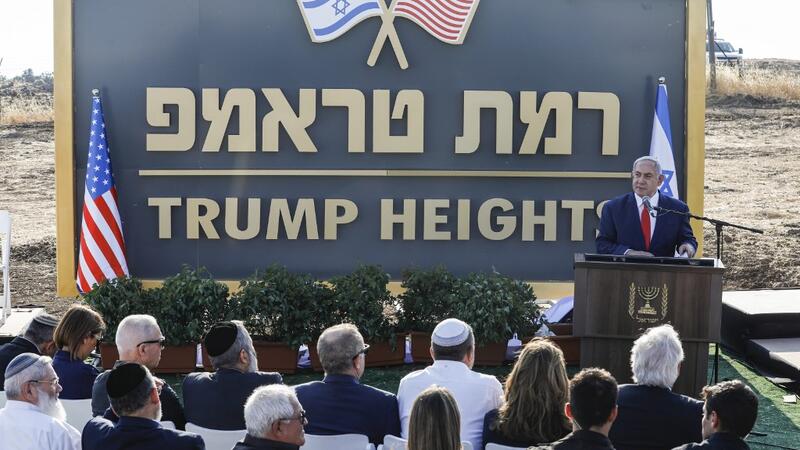 Netanyahu unveiled a "Trump Heights" sign to mark the site of the new settlement.