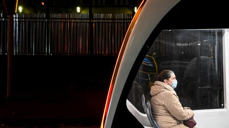 A woman wearing a face mask to protect against the Covid-19 disease uses a tram in Moscow on October 23, 2020, amid the ongoing coronavirus pandemic. Russia confirmed 17,340 new Covid-19 daily cases including 5,478 in Moscow on October 23, 2020. Kirill KUDRYAVTSEV / AFP