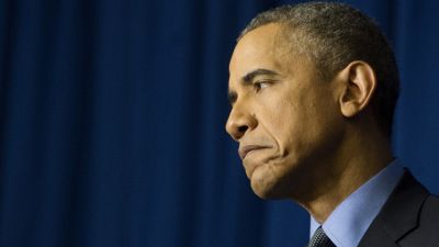 US President Barack Obama reacts during a press conference at the Organization for Economic Co-Operation and Development Centre in Paris on December 1, 2015. (AFP/Jim Watson)