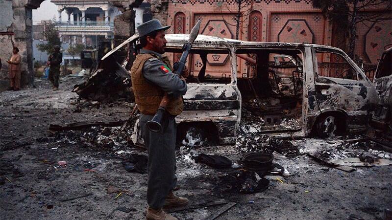 Afghan security forces inspect the site of attack on British charity Save the Children office. (AFP)