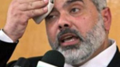 Haniyeh, 46, slurred some words, then stopped speaking in midsentence and fell on aides surrounding him. "Our bodies can get tired, but our soul will not, and we will not stop our steadfastness," he said after the incident.