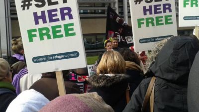 The crowd of women protesters in London called on Home Secretary Theresa May to free the women of Yarl’s Wood- - the notorious detention center where female asylum seekers are held.