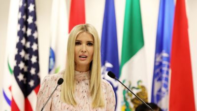 'We believe that women's inclusion in the economy is not solely a social justice issue, which of course it is. It's also smart economic and defense policy,' said glamorous Ivanka, President Trump's eldest daughter and adviser.