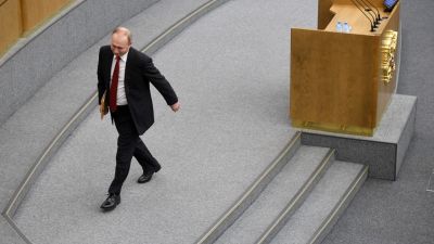 Russian President Vladimir Putin leaves after addressing lawmakers debating on the second reading of the constitutional reform bill during a session of the State Duma, Russia's lower house of parliament, in Moscow on March 10, 2020. Alexander NEMENOV / AFP