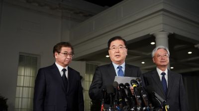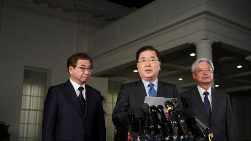 On a separate note from his main mission of briefing President Trump on North Korea's invitation to hold dialogue, Chung met U.S. Defense Secretary James Mattis and National Security Adviser Herbert McMaster on Thursday to bring up the steel trade issue.