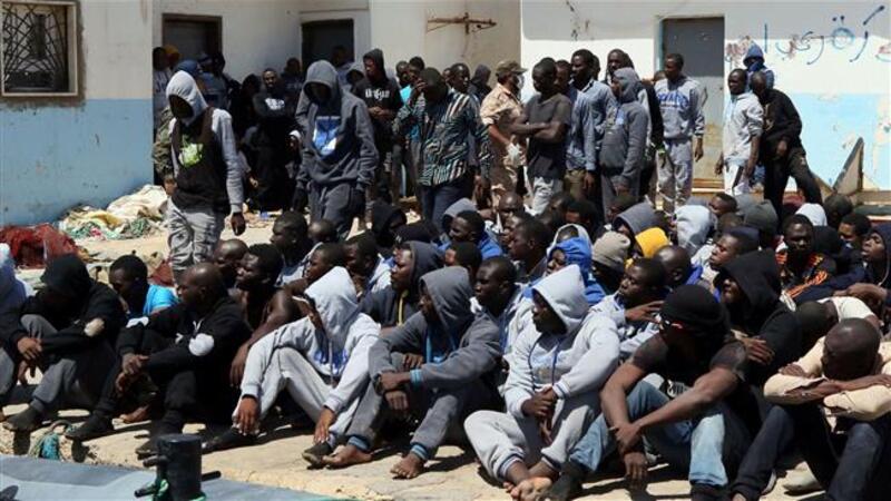 Refugees sit on the dock at the Tripoli port after being rescued by coast guard boats off the coast of Libya on June 7, 2016. (AFP/File)