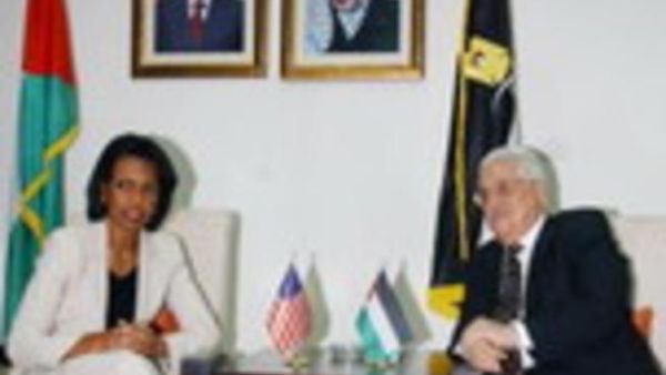 Rice pledged to President Abbas that her country will continue work of bringing a two state solution to the people of Palestine and the people of Israel.