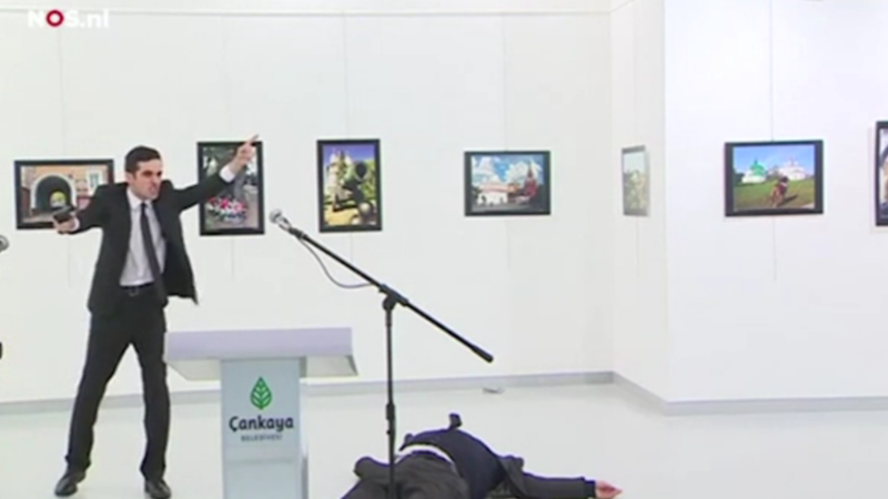 The above clip captures what happened moments after the Russian ambassador to Turkey was assassinated at an art gallery in the country's capital of Ankara on Monday evening.