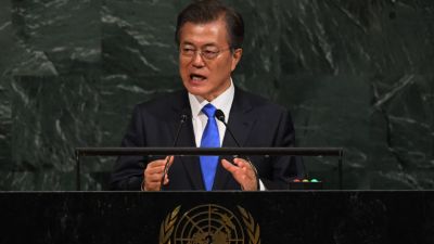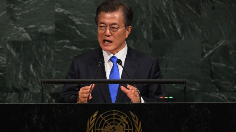 The cross-border visit marks the first of its kind since President Moon took office last year.