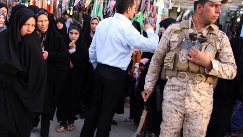 Iranian Shiite Muslim pilgrims walk past a member of Iraq's security personnel in Kerbala, 110 km south of Baghdad, June 7, 2013. (Reuters)