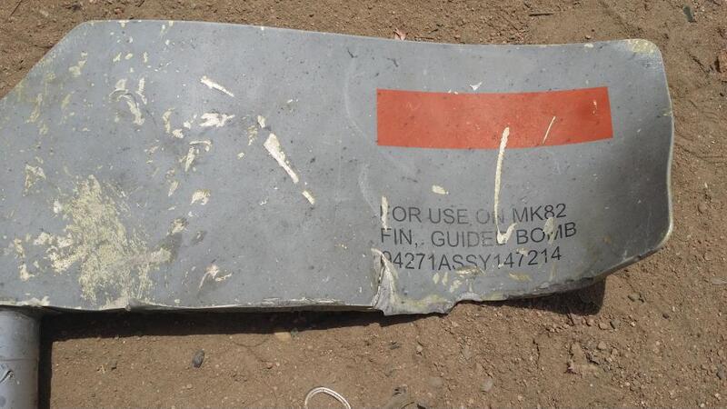 The images have not been independently verified yet; however, this is not the first time that Mark 82 pieces have been found at the site of Saudi-led air raids against civilian targets since the onset of the military campaign in early 2015.