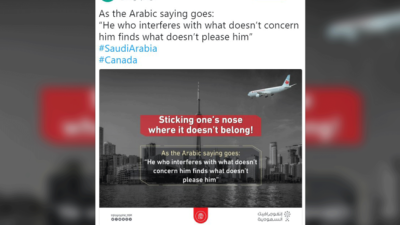 The message was a response to a dispute over the weekend between the Canadian and Saudi governments, in which Riyadh cut diplomatic ties with Canada and expelled Ottawa's ambassador.