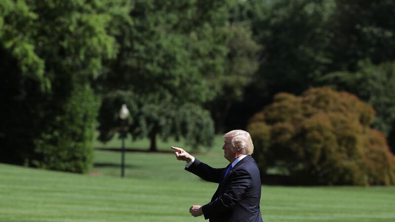 U.S. Donald Trump points to supporters on the South Lawn as he departs the White House June 9, 2017 in Washington, DC. Trump will spend the weekend at his golf club in Bedminster, New Jersey. Chip Somodevilla/Getty Images/AFP