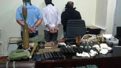 The General Directorate of Lebanon’s State Security State said Friday it arrested two Syrians and a Palestinian in the West Bekaa Valley over the possession of arms and 80 kilograms of explosives, rocket-propelled grenades, surveillance equipment, listening devices, transmitters and wireless receivers.
