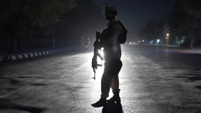 An Afghan security personnel walks as he keep watch near the site of an attack by gunmen inside the Kart-e- Sakhi shrine in Kabul on October 11, 2016. (AFP/Wakil Kohsar)