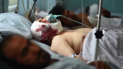 Wounded Afghan men receive treatment at the Wazir Akbar Khan hospital following a car bomb attack in Kabul (AFP)