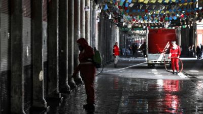 The Syrian Red Crescent - seen as close to the regime - has sent trucks onto the streets of Damascus for the mass sanitisation of the capital, while volunteers have been called up to spray down public spaces in towns and cities with disinfectant.