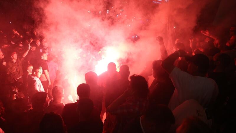 Protesters congregated in front of the National Assembly Building in Belgrade in response to President Aleksandar Vucic announcing a weekend curfew in an effort to curb the spread of the virus.
