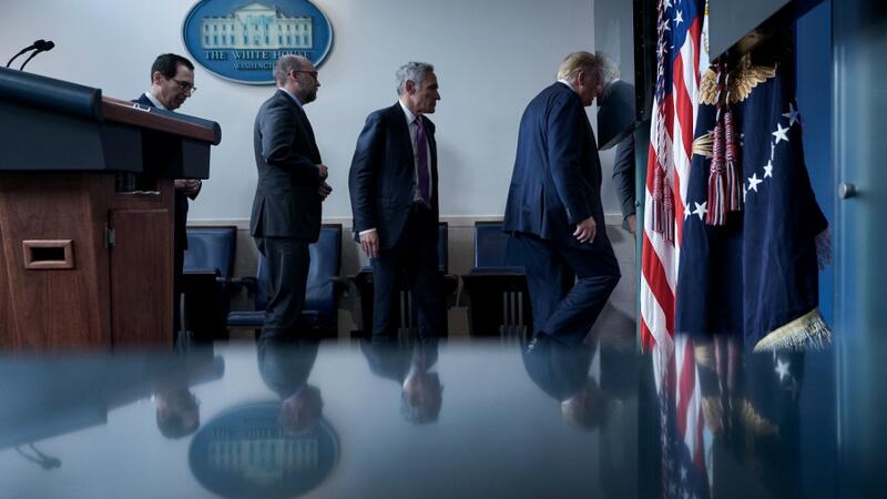 President Donald Trump was abruptly escorted by a US Secret Service agent out of the White House briefing room as he was beginning a coronavirus briefing on Monday afternoon.