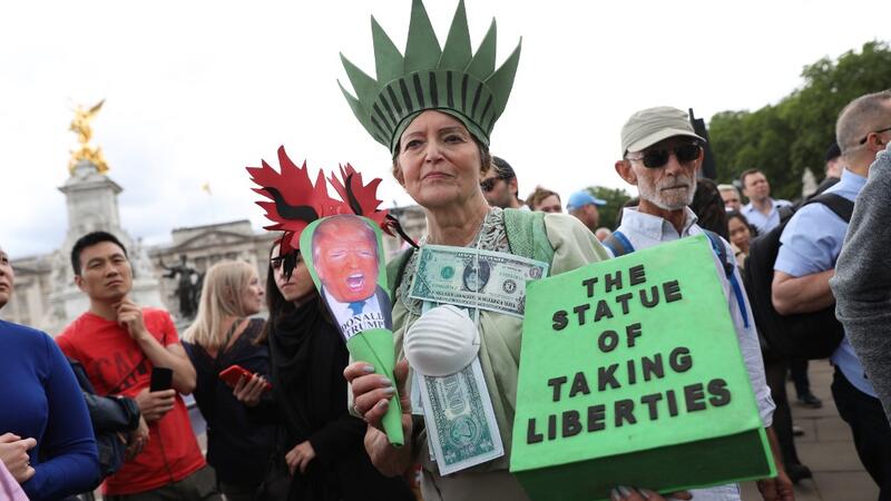 Tens of thousands of people filled London’s central Trafalgar Square on Tuesday to protest the state visit to the U.K. by U.S. President Donald Trump.