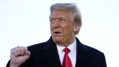 In this file photo former US President Donald Trump speaks before boarding Air Force One at Joint Base Andrews in Maryland on January 20, 2021. Republican lawmakers demonstrated on January 24, 2021 that Democrats will have a fight on their hands to convict Donald Trump when the Senate next month opens its first-ever impeachment trial of a former president. Speaker Nancy Pelosi is expected on Monday to send senators a single article of impeachment passed in the House of Representatives that blames Trump for inciting the chaotic Capitol invasion of January 6, which left five people dead. ALEX EDELMAN / AFP