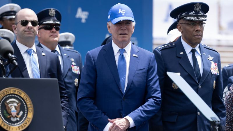 The president Biden dropped to his knees after stumbling over a sandbag after two hours on stage at the service academy in Colorado Springs on Thursday.