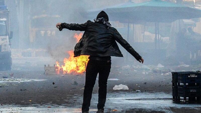 Clashes between Turkish forces and Kurdish people in Diyarbakir, during protest against curfew (AFP)